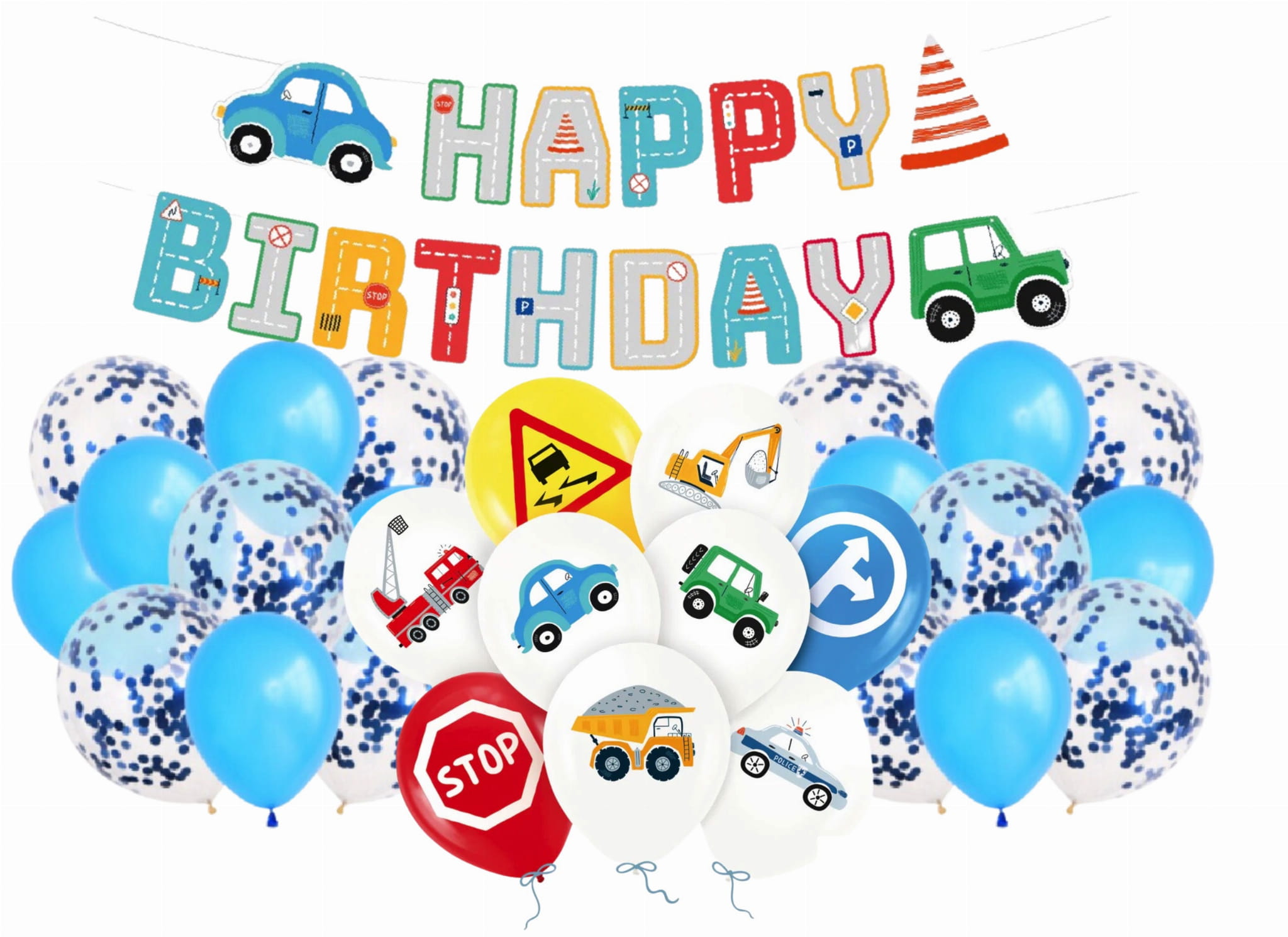 Zestaw balonów Auta Znaki drogowe na Urodziny Kierowca