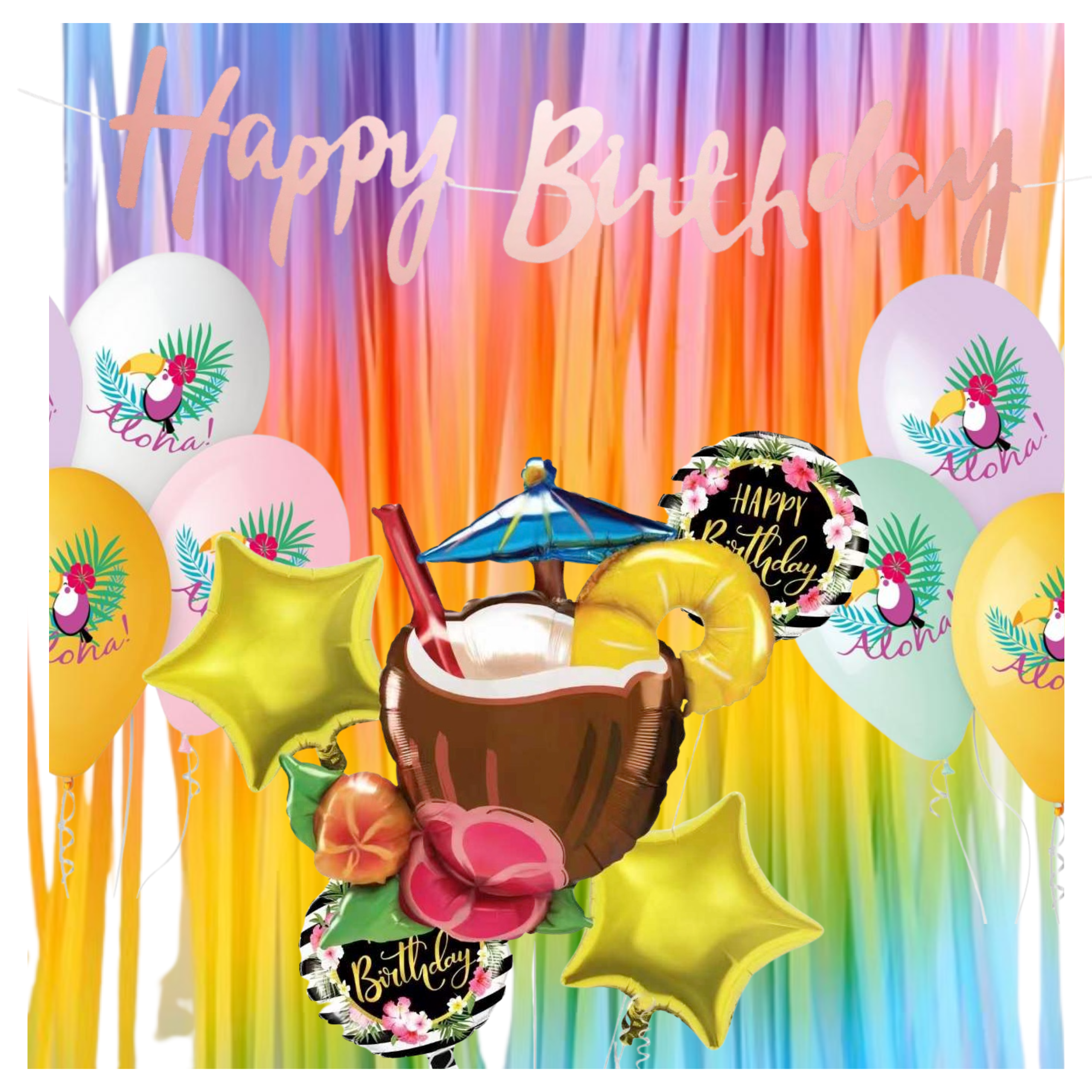 Zestaw balonów HAWAJE Tukan Kokos drink Balony na 18 urodziny Baner Kurtyna