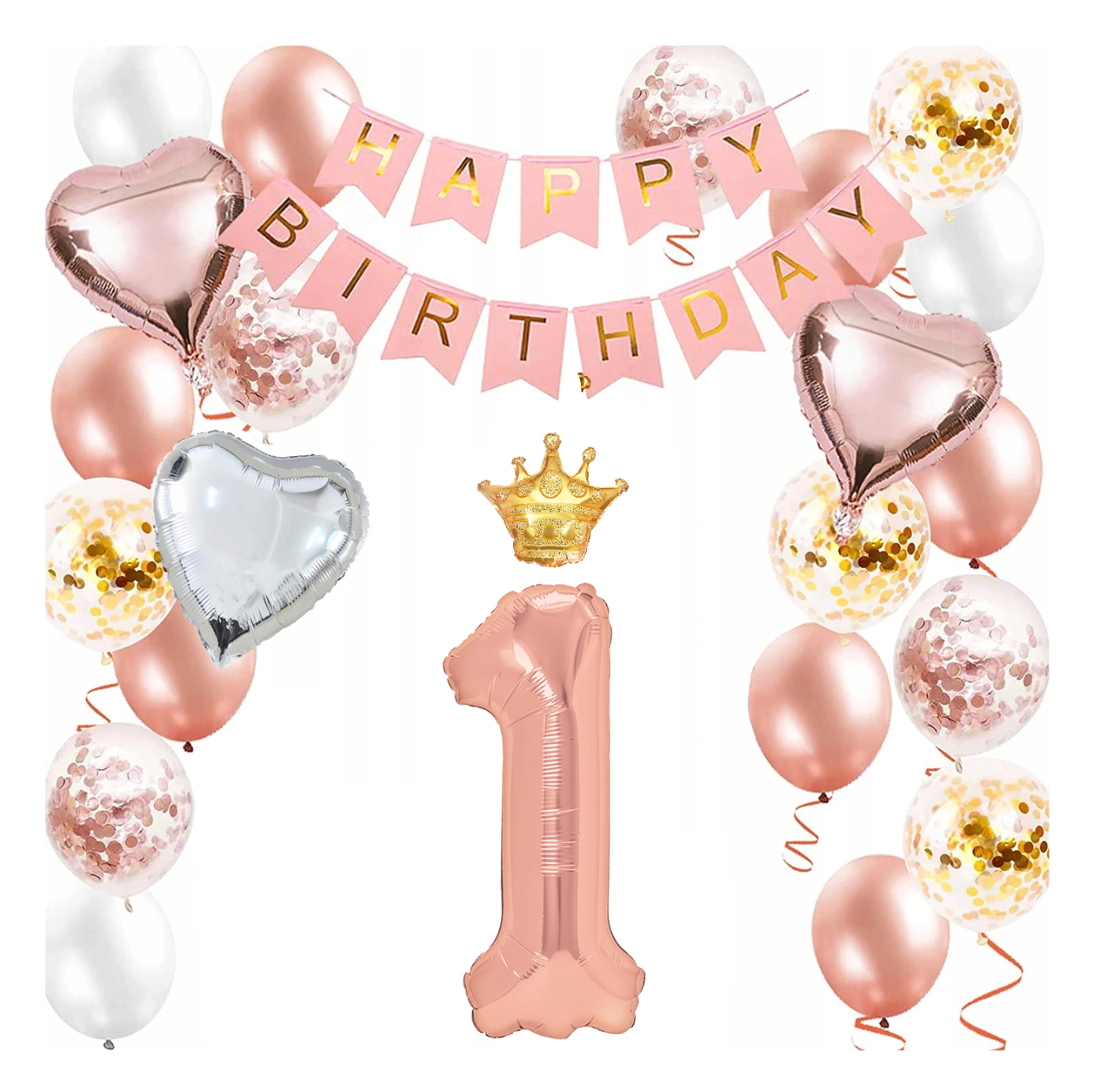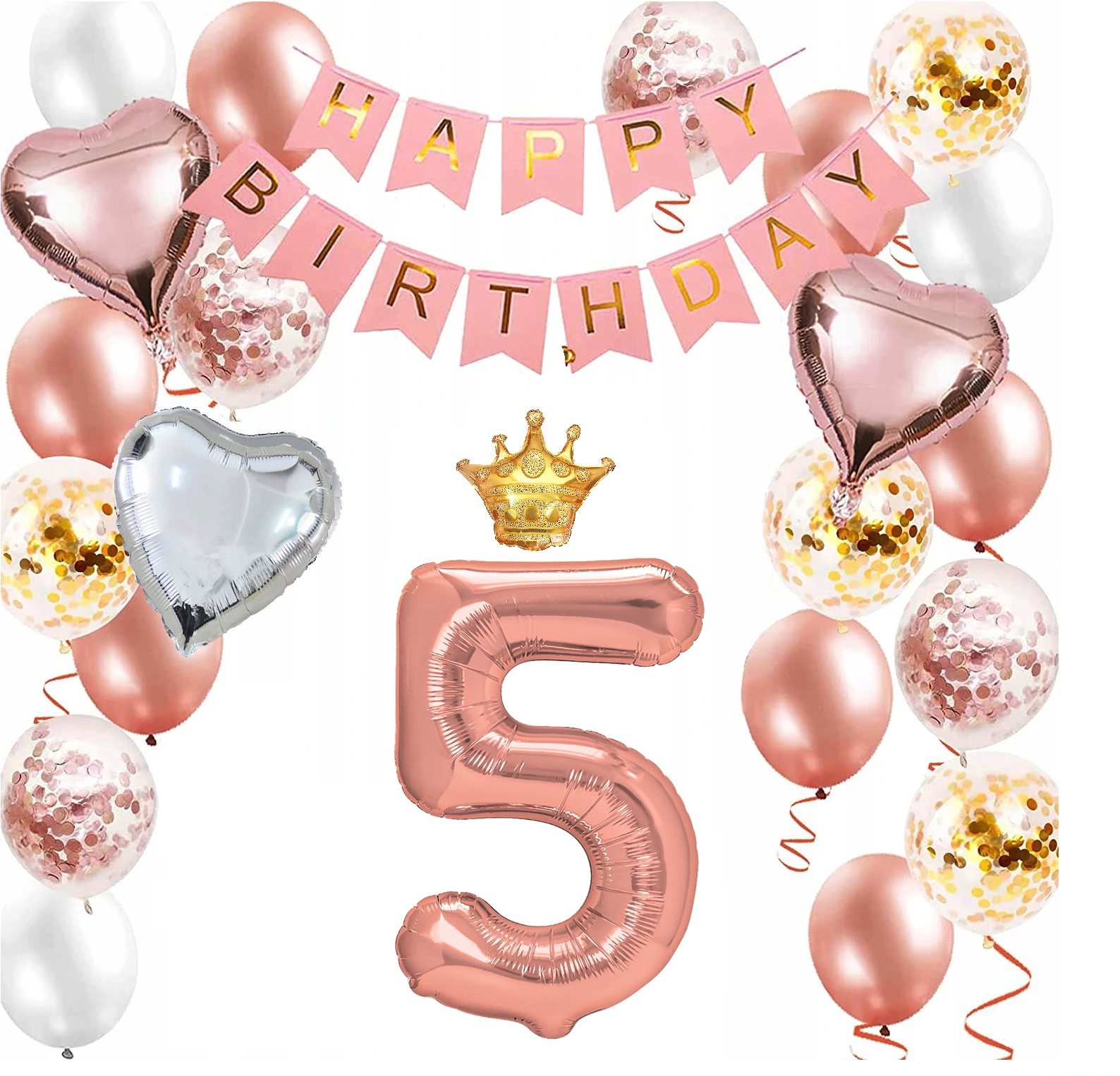 Zestaw balonów Rose Gold na Urodziny baner cyfry 0-9