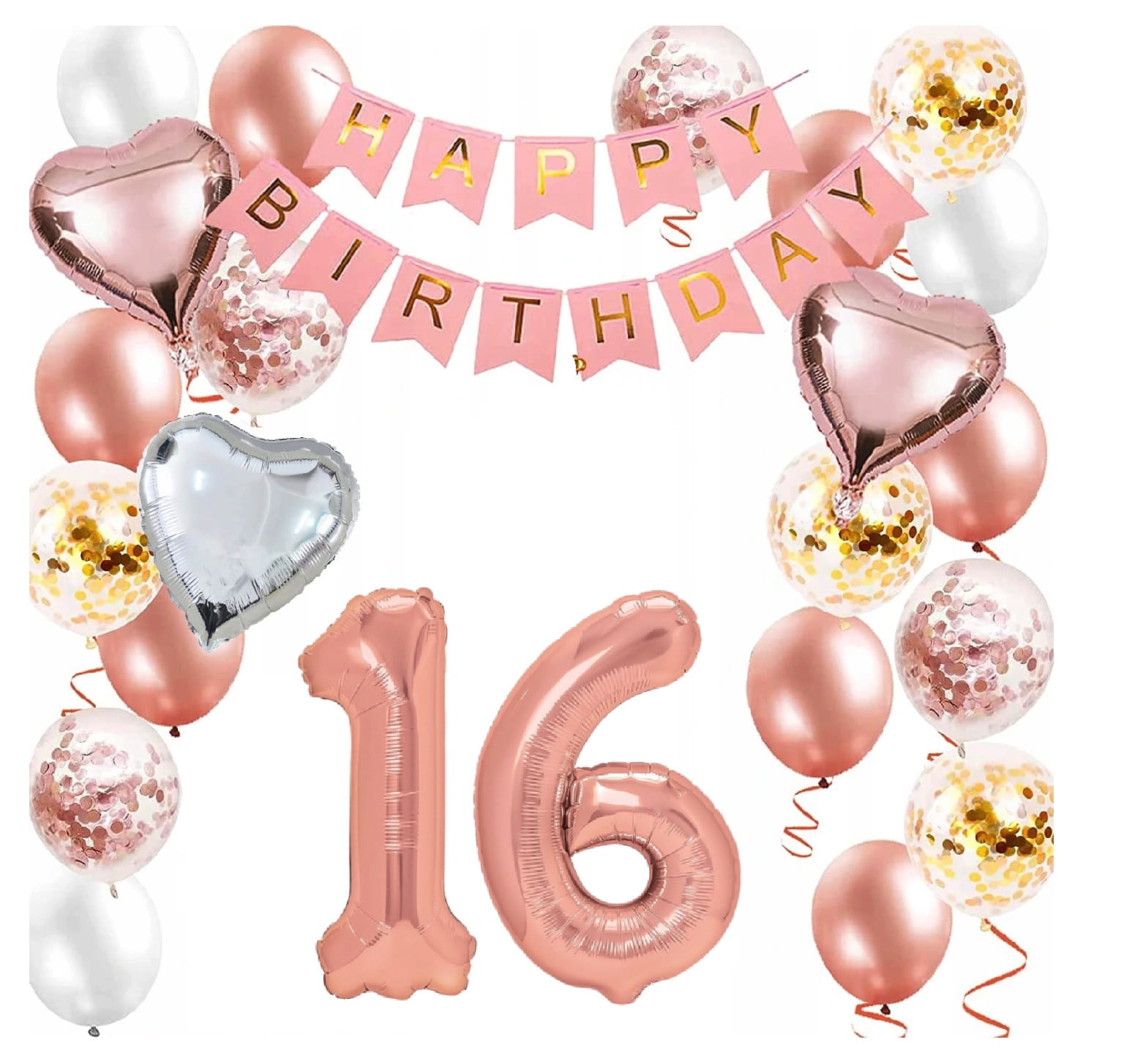Zestaw balonów Różowe złoto Rose gold cyfry 16 Urodziny Balony Hel