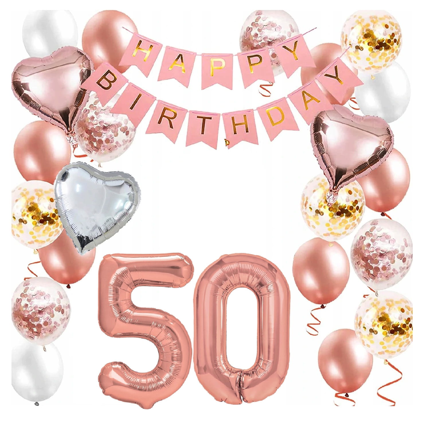 Zestaw balonów Różowe złoto Rose gold cyfry 50 Urodziny Balony Hel