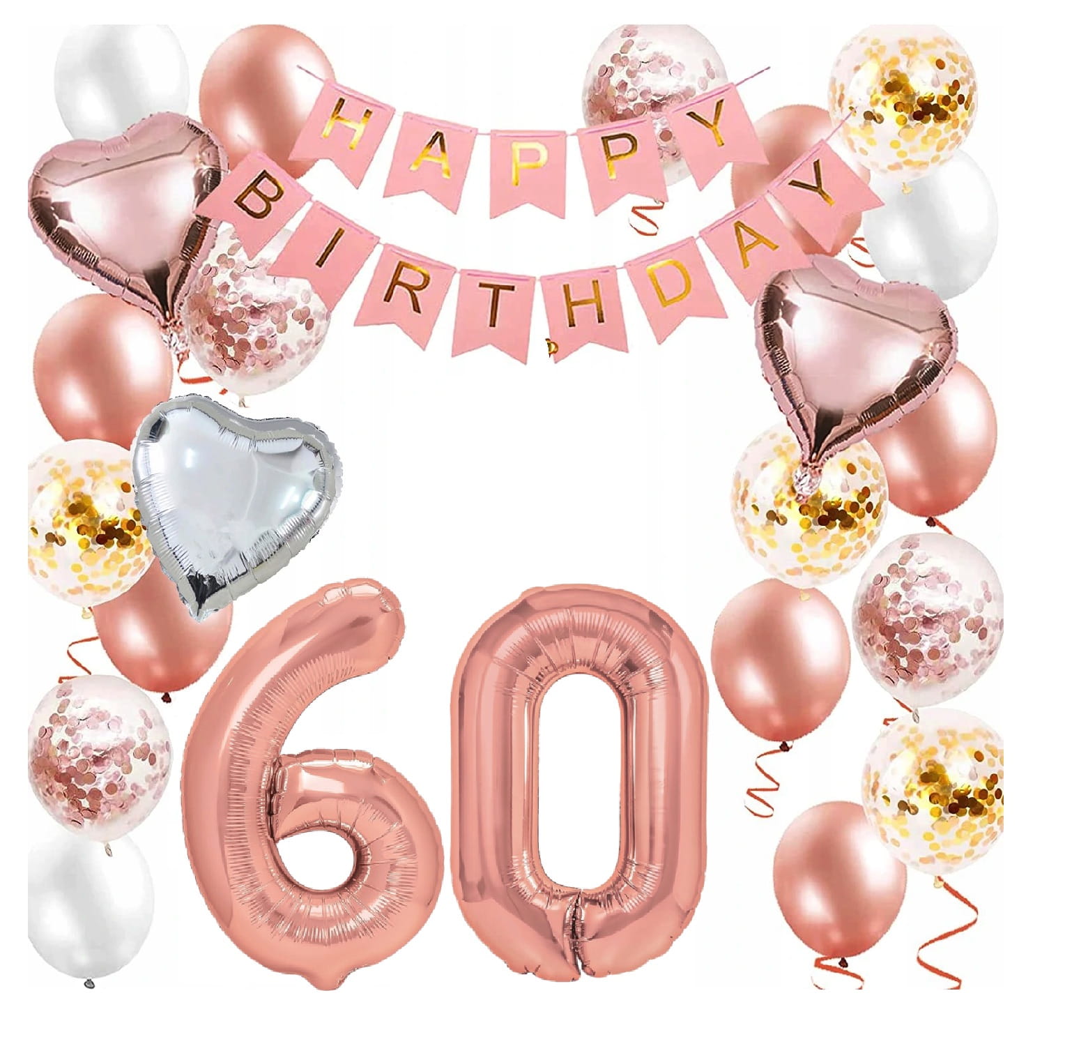 Zestaw balonów Różowe złoto Rose gold cyfry 60 Urodziny Balony Hel