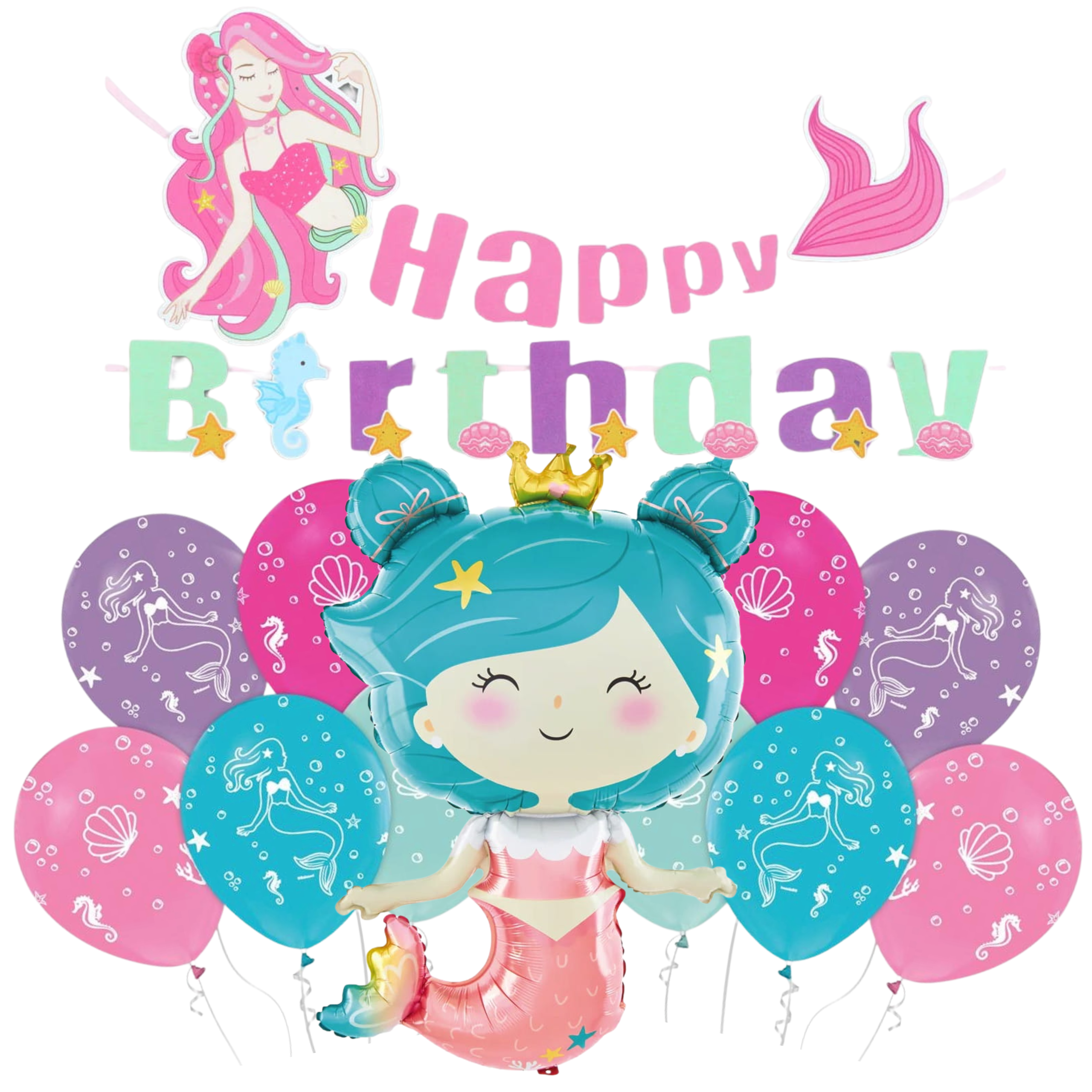 Zestaw balonów Syrenka URODZINY dziewczynki Konik Morski Urodziny Roczek