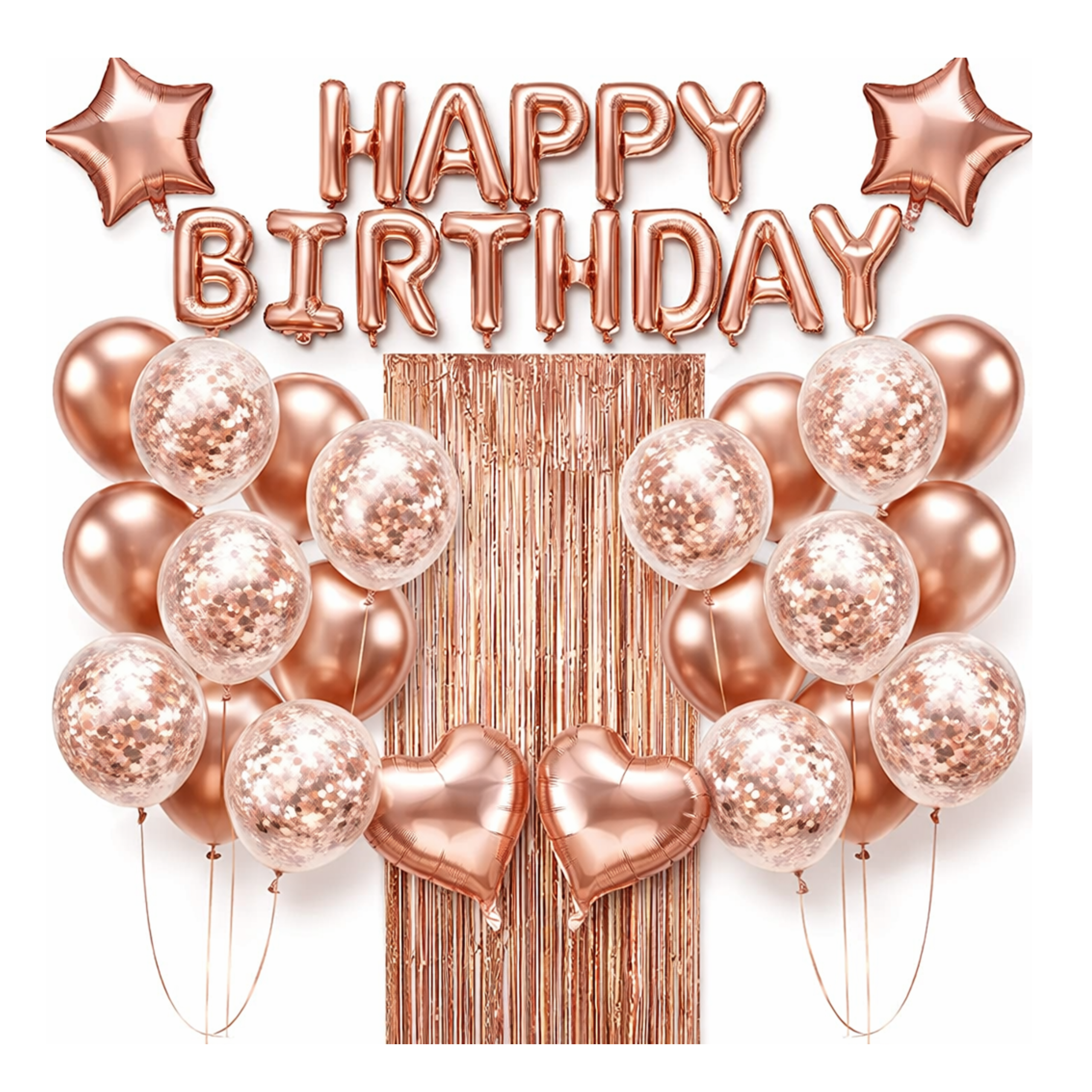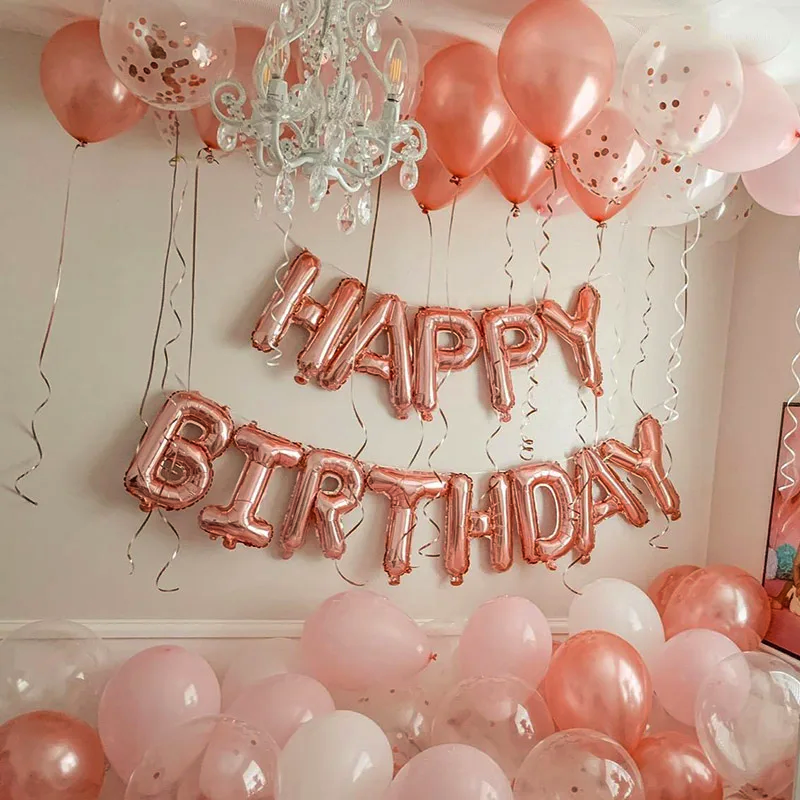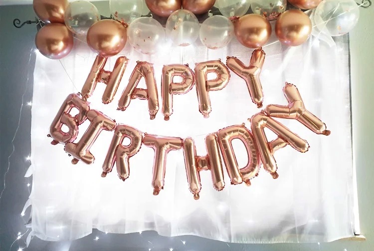 ✔️napis z balonów foliowych Rose Gold Happy Birthday (balony nie unoszą się po napompowaniu helem, Rozmiar ok. 40x340cm