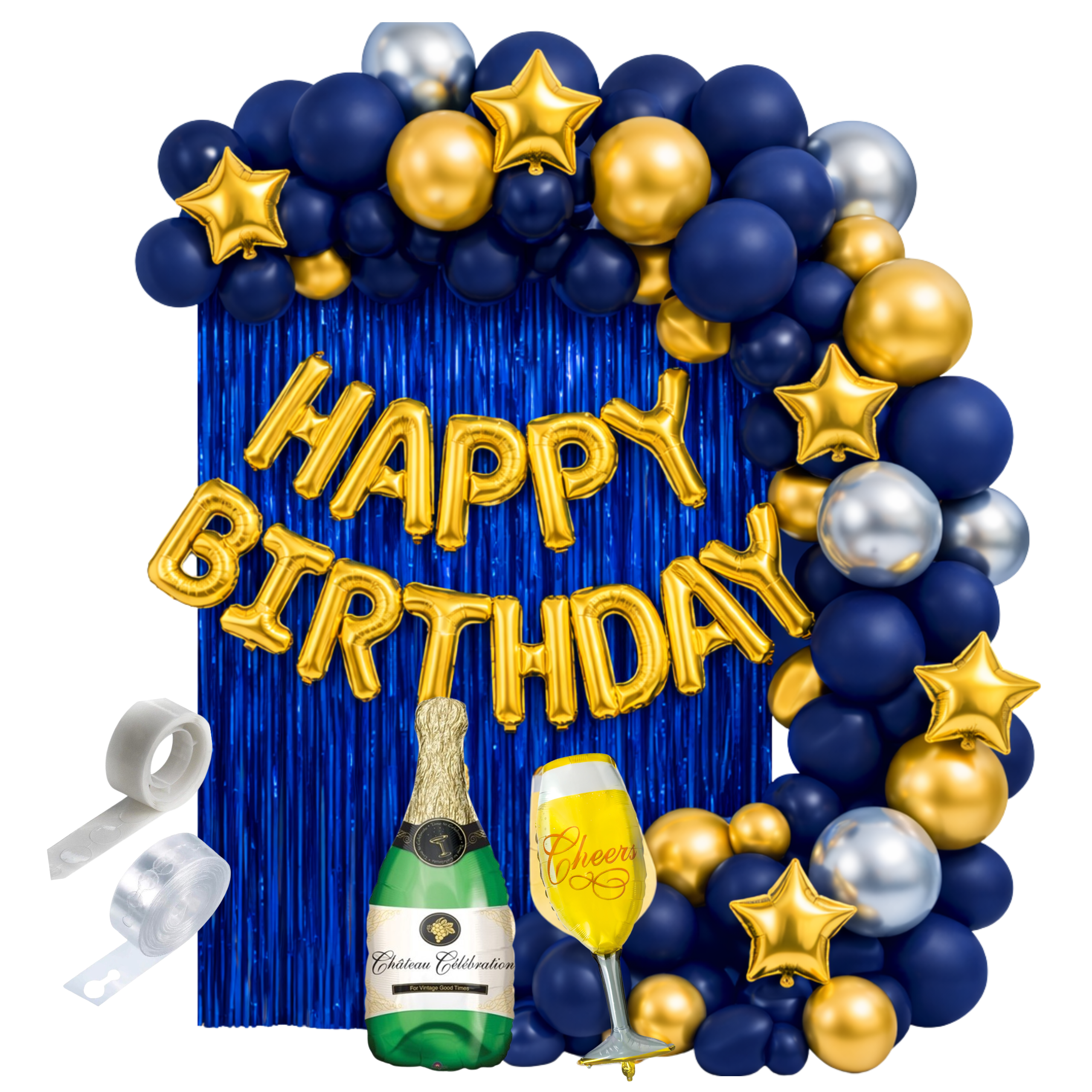 Zestaw balonów Urodziny Girlanda balonowa granatowa ścianka napis tło taśma