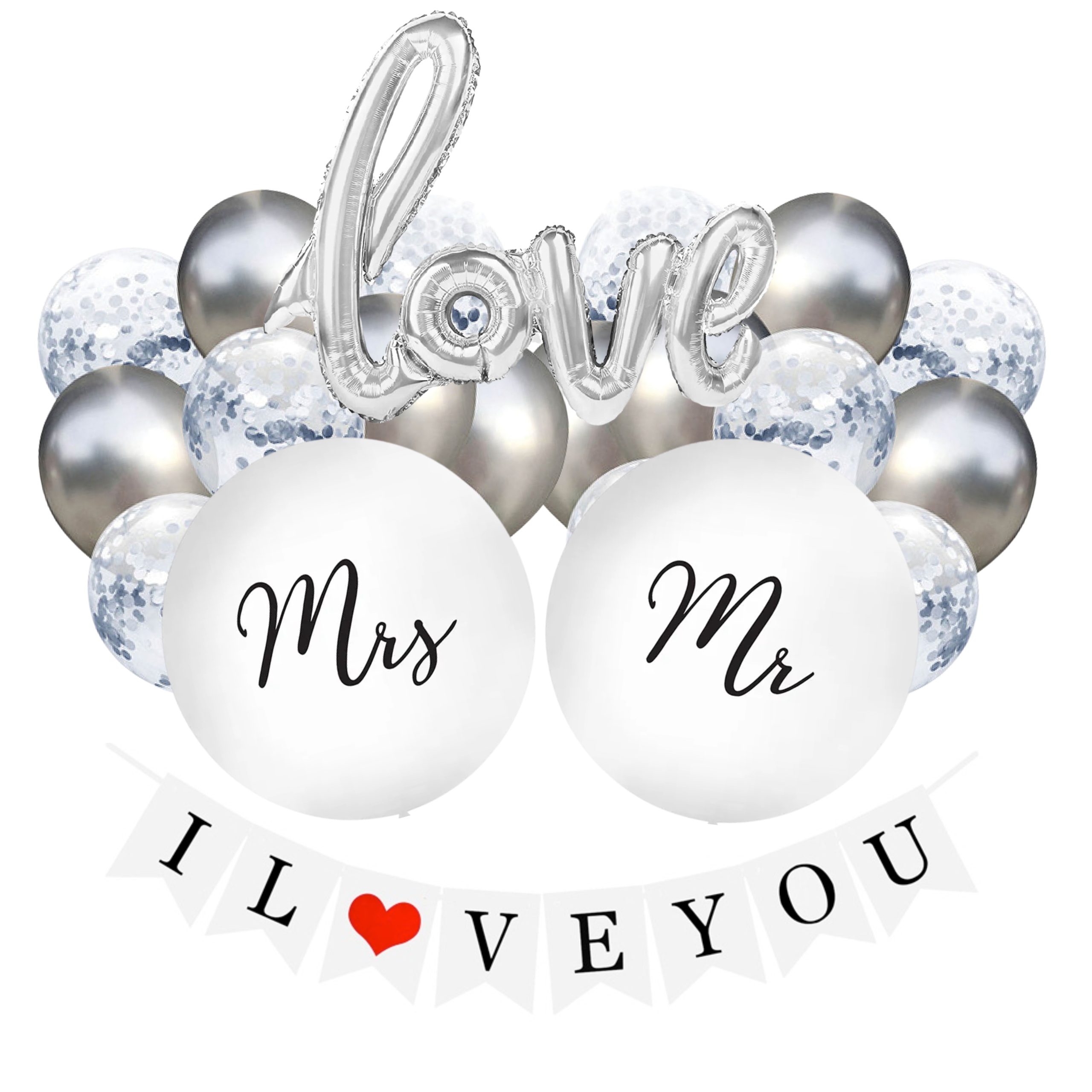 Zestaw balonów Wesele Rocznicę Ślubu Srebrne Gody Baner I LOVE YOU napis