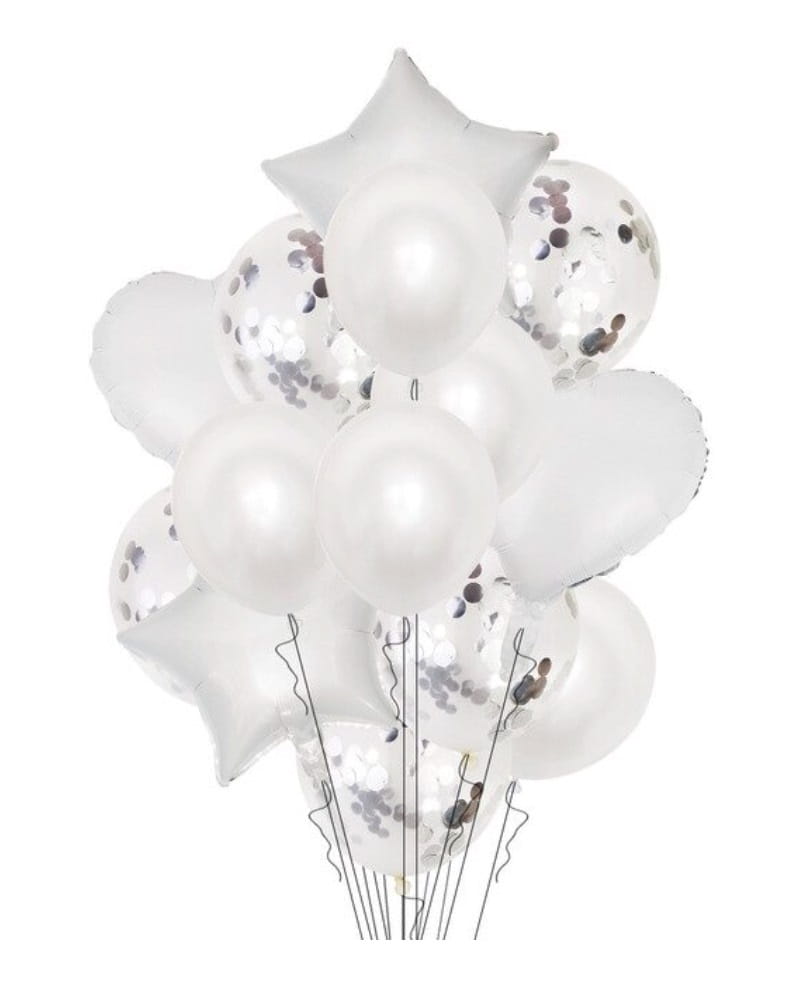 Zestaw balonów białych na Ślub Chrzest z konfetti hel