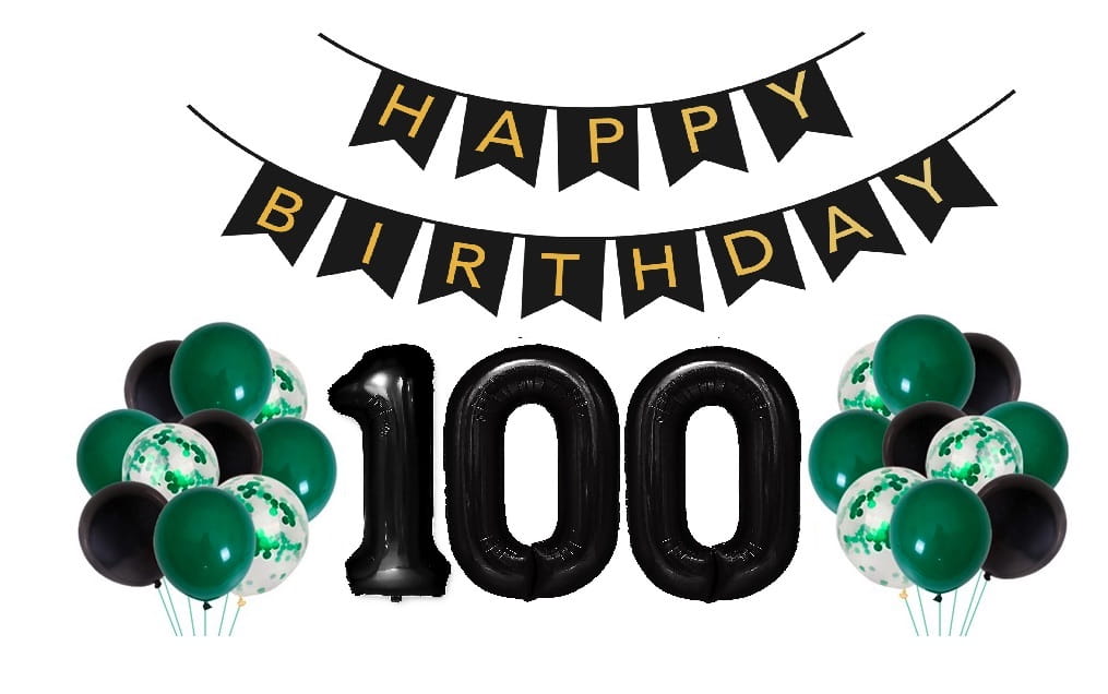 Zestaw balonów butelkowa zieleń Urodzinowe na 100 Urodziny