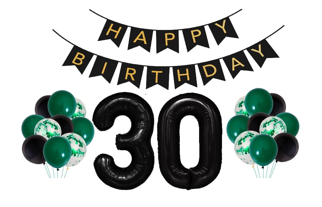 Zestaw balonów butelkowa zieleń Urodzinowe na 30 Urodziny