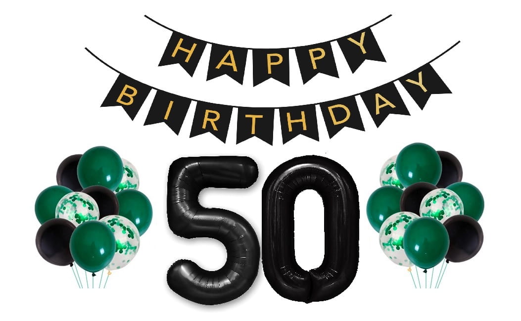 Zestaw balonów butelkowa zieleń Urodzinowe na 50 Urodziny