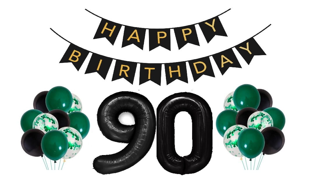 Zestaw balonów butelkowa zieleń Urodzinowe na 90 Urodziny
