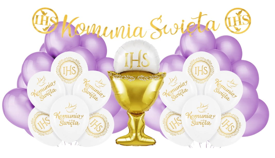 Mamy dla Ciebie idealne rozwiązanie! Nasz zestaw balonów w pięknej kolorystyce biało-liliowej z motywem Komunii Świętej to doskonały wybór, który doda niepowtarzalnego klimatu Twojemu przyjęciu.