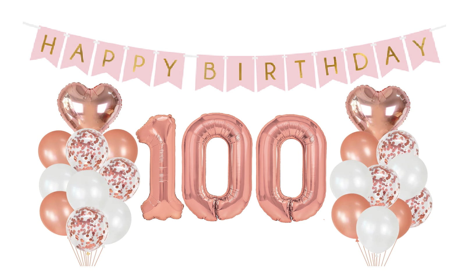 Zestaw balonów na 100 Urodziny Cyfry Rose gold baner Happy Birthday