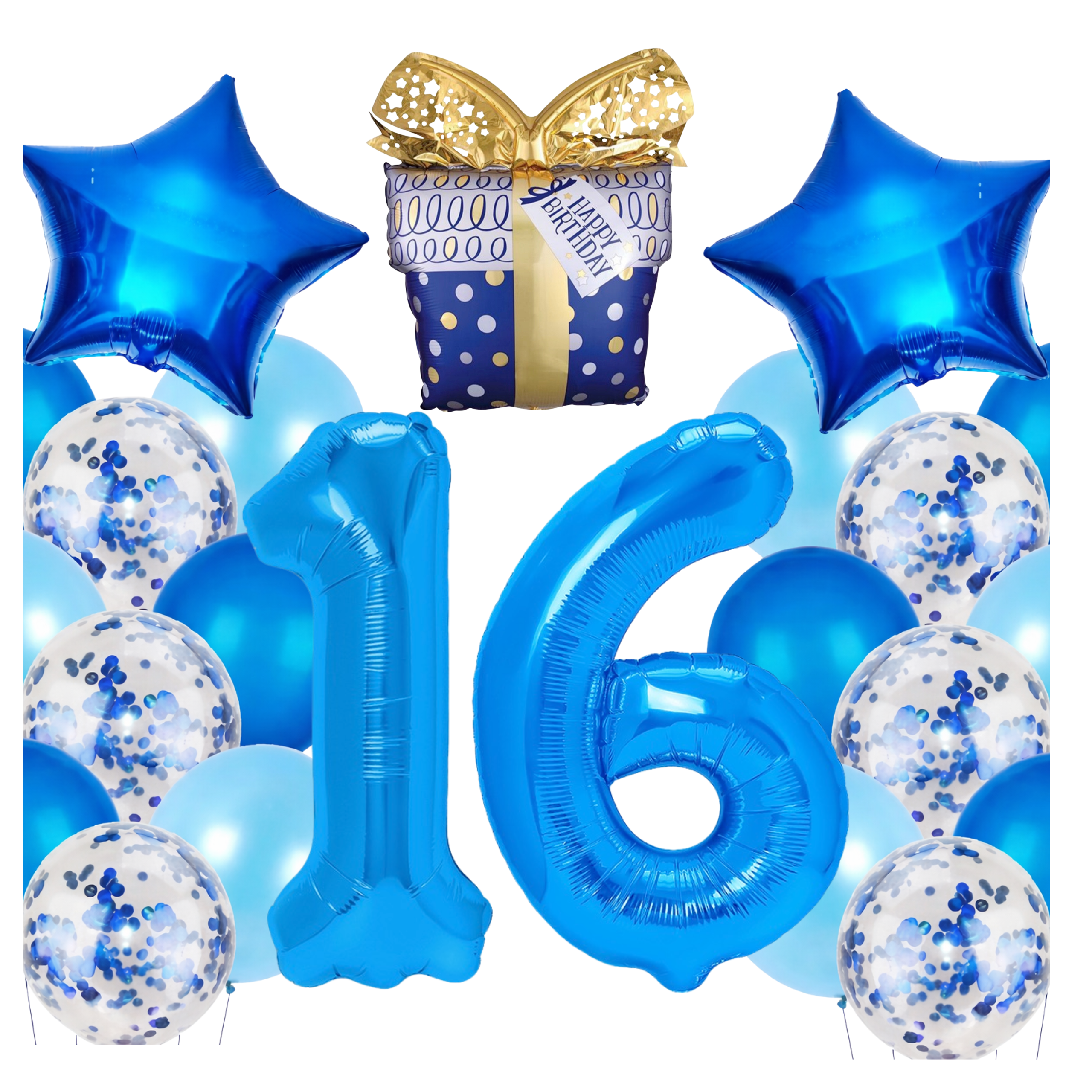 Zestaw balonów na 16 Urodziny niebieskie Granatowe balony PREZENT CYFRY