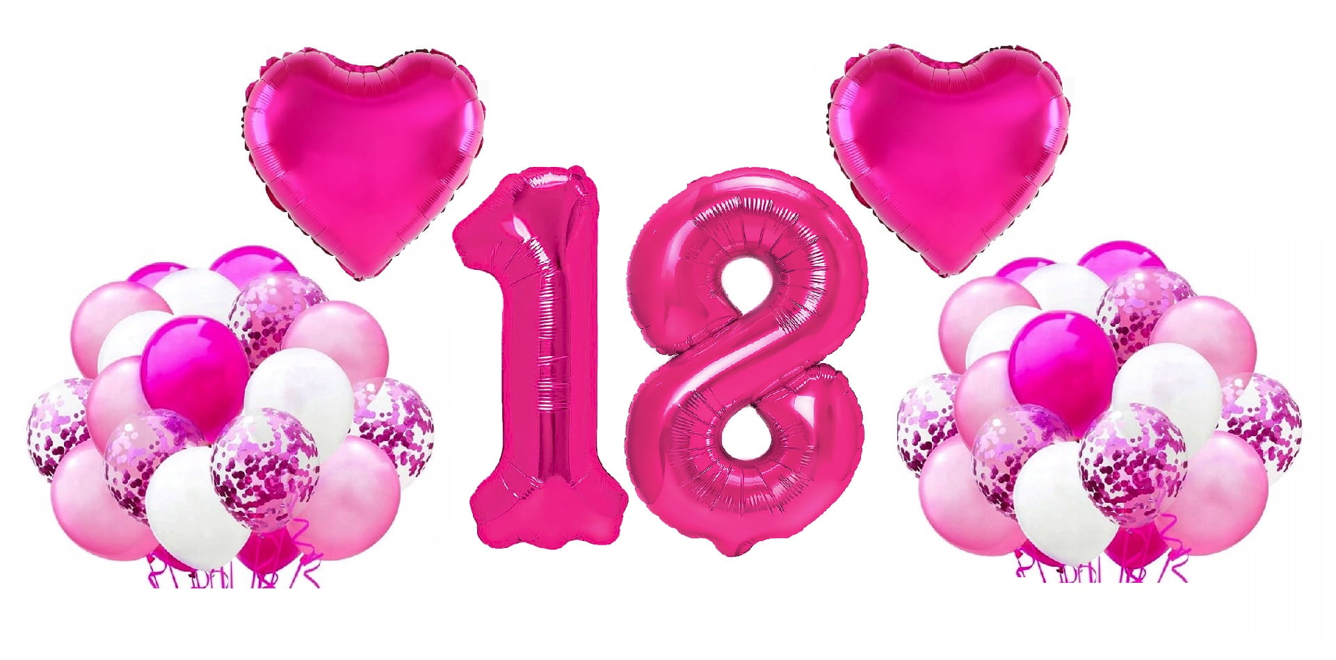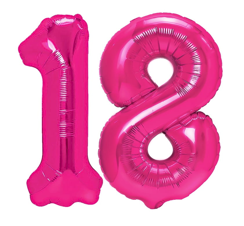 Zestaw balonów na 18 Urodziny Cyfry 100cm fuksja Serce balony