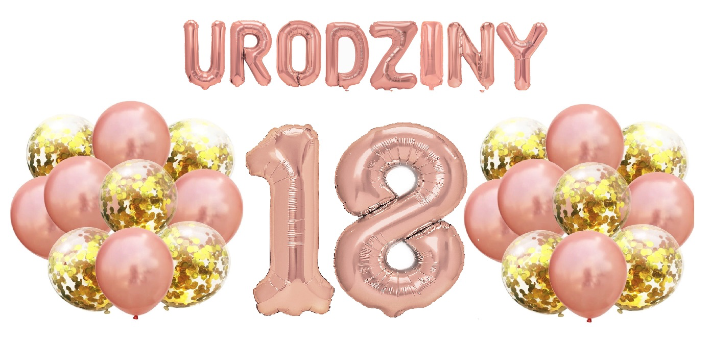 Zestaw balonów na 18 Urodziny Rose Gold Napis Cyfry 100cm