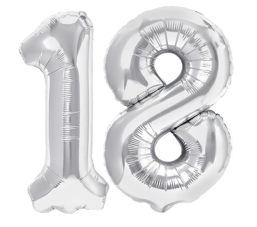 ✔️ balony foliowe srebrne cyfry 2 sztuki "1" i "8" 70cm (nie unoszą się po napełnieniu helem)