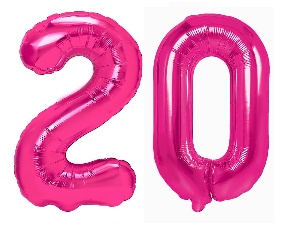 ✔️ balony foliowe ciemnoróżowe cyfry 100cm 2 sztuki "2" i "0"
