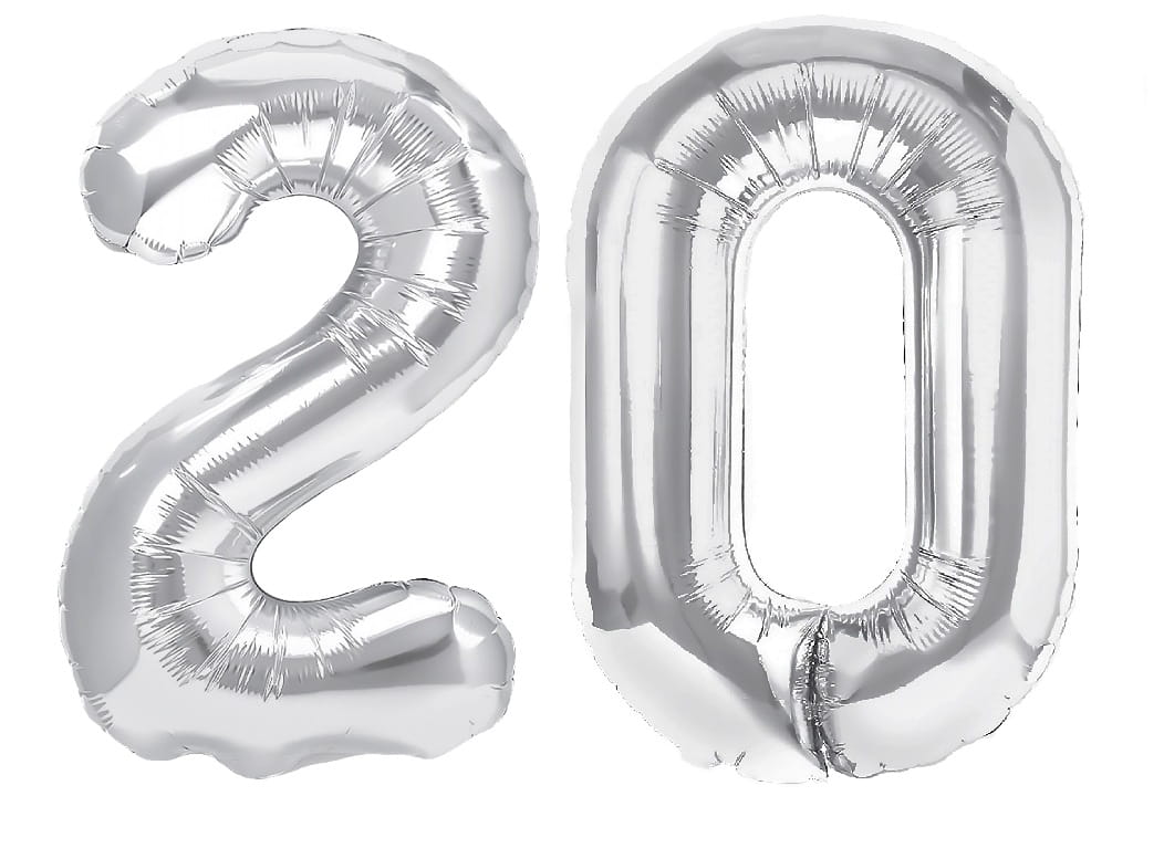 Zestaw balonów na 20 Urodziny srebrne balony Napis