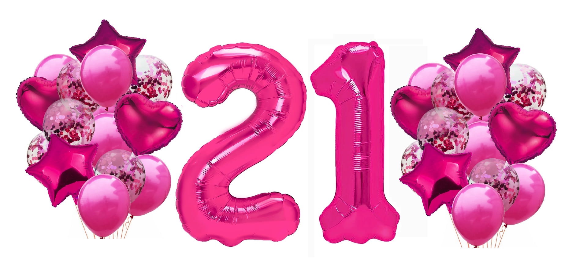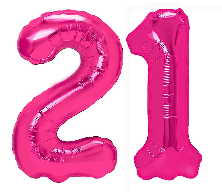Zestaw balonów na 21 Urodziny Cyfry fuksja balony z konfetti