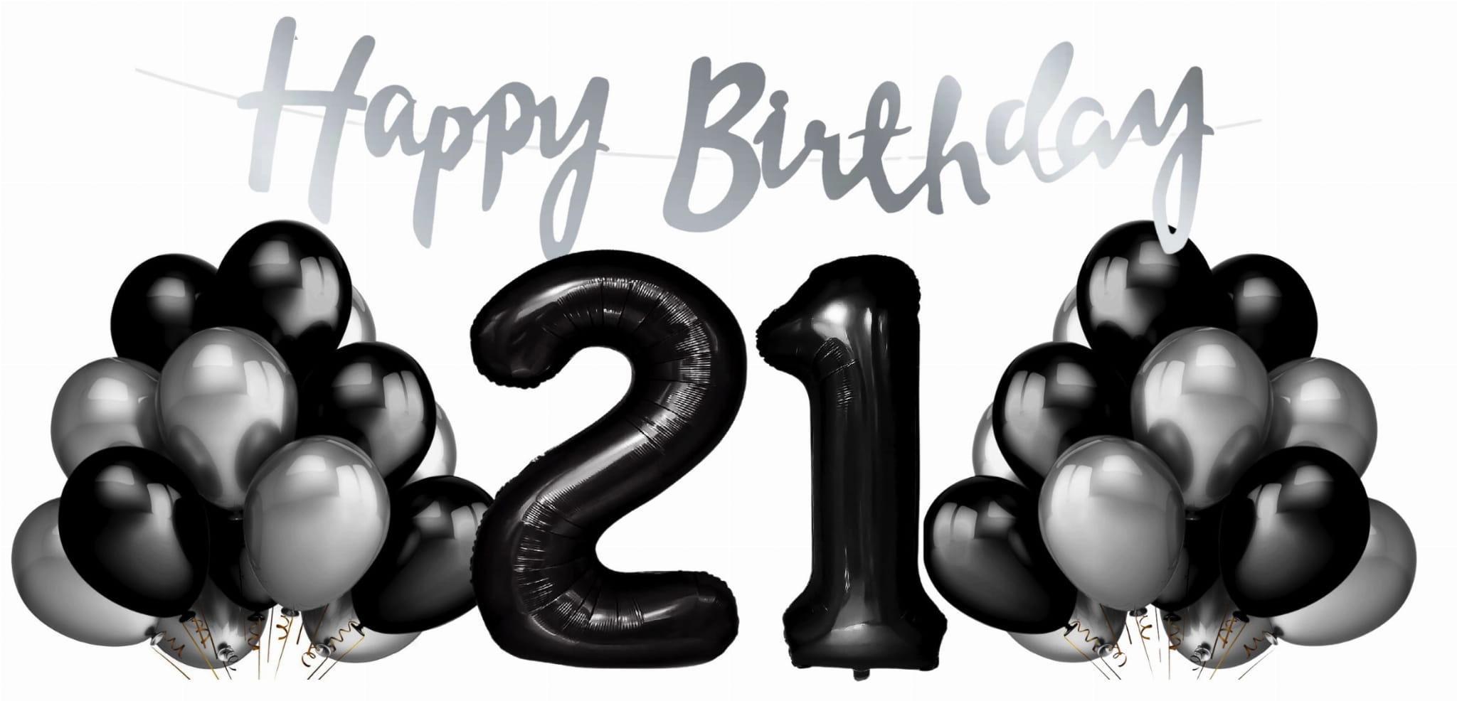 Zestaw balonów na 21 urodziny Cyfry czarne balony srebrno czarne Baner Hel