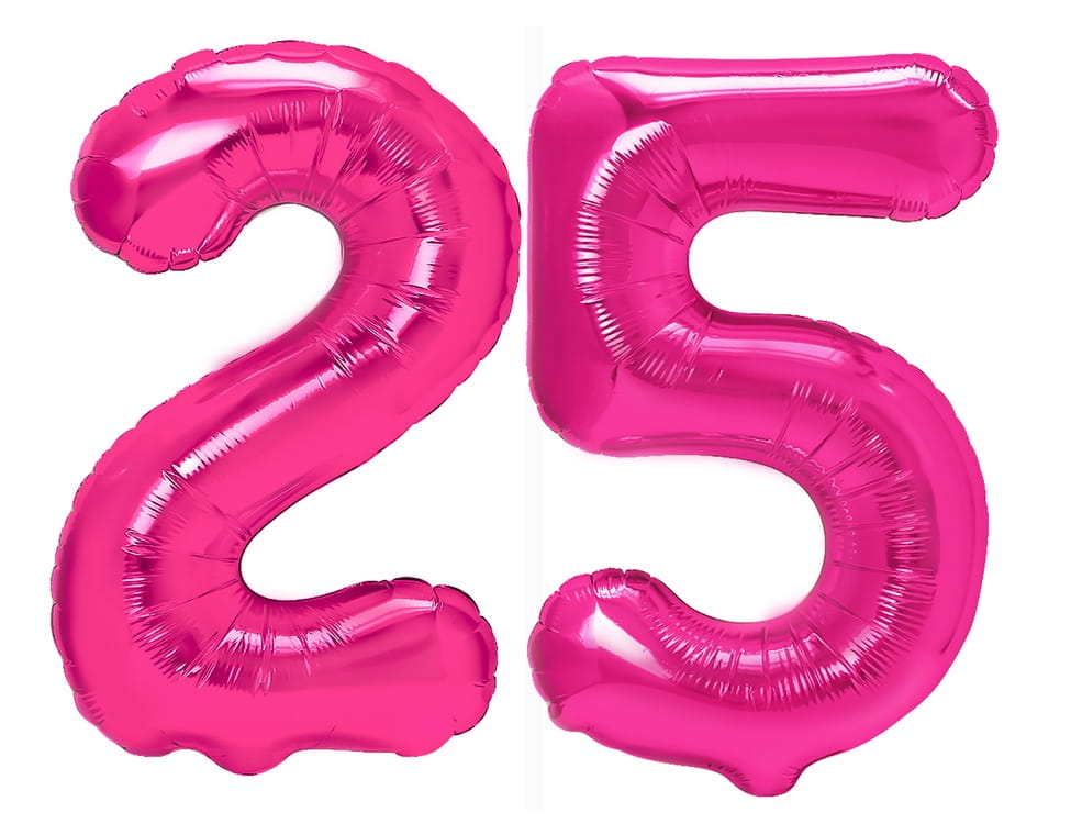 Zestaw balonów na 25 Urodziny Cyfry fuksja balony z konfetti