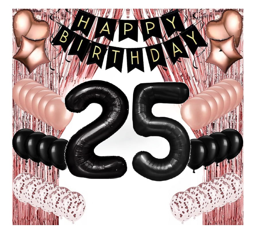Zestaw balonów na 25 Urodziny Rose Gold dla Kobiety z kurtyną