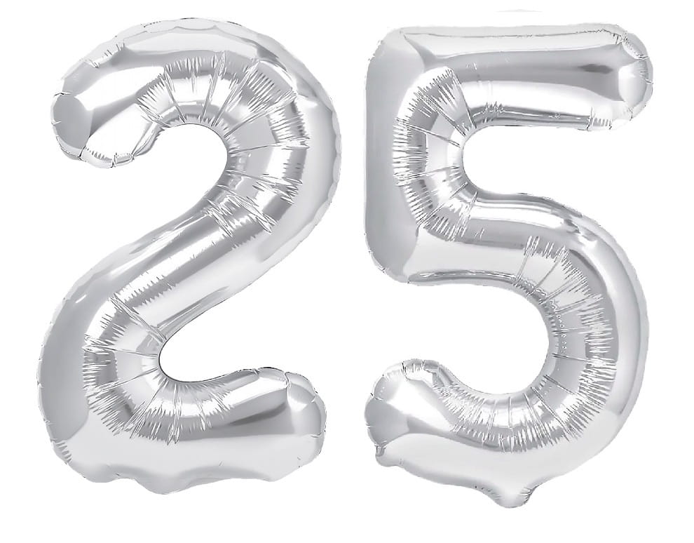 Zestaw balonów na 25 Urodziny srebrne balony Napis