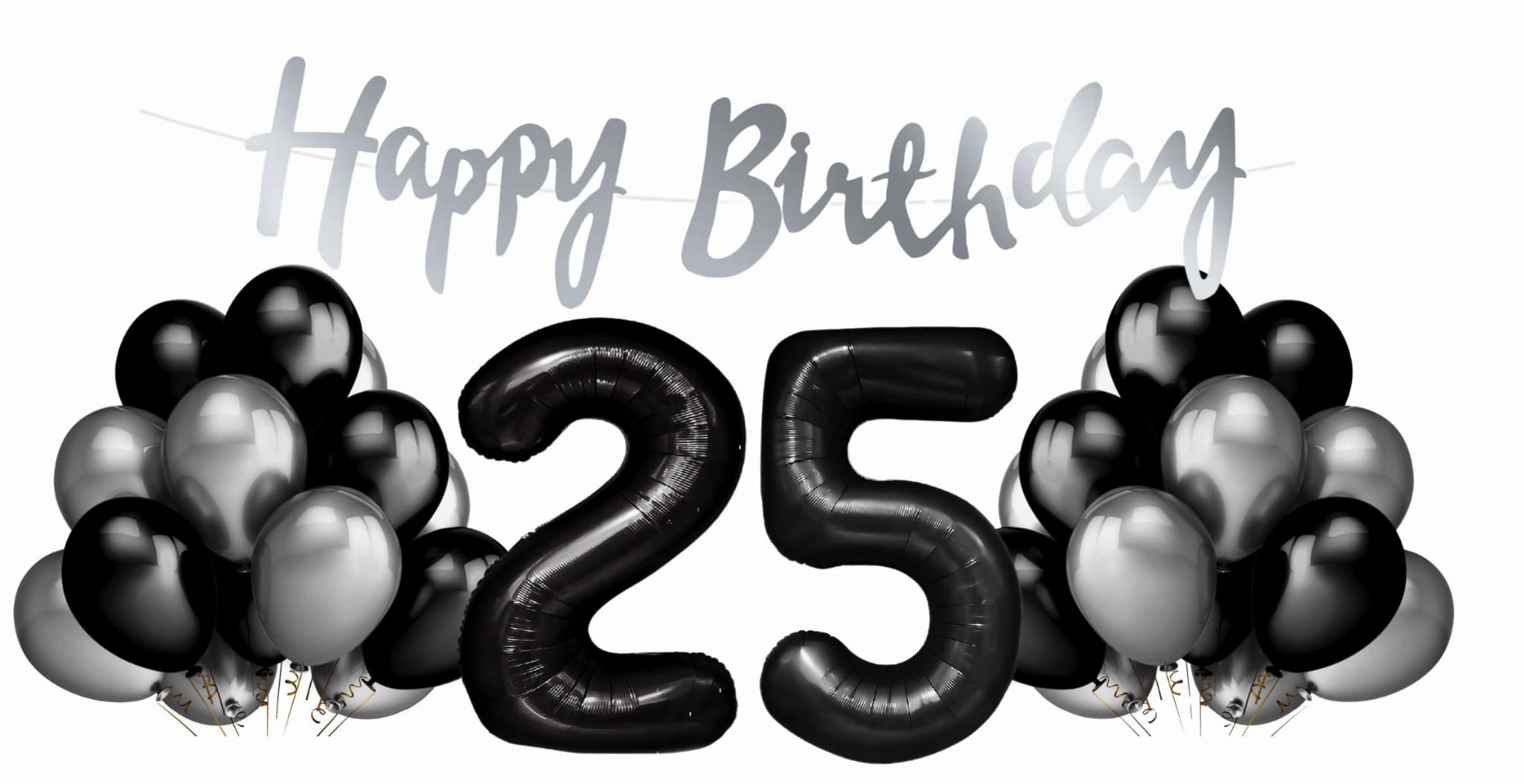Zestaw balonów na 25 urodziny Cyfry czarne balony srebrno czarne Baner Hel