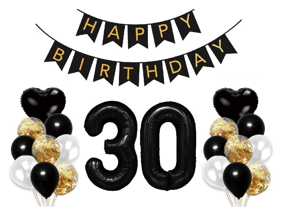 Zestaw balonów na 30 Urodziny Baner Happy Birthday Cyfry 100cm czarne