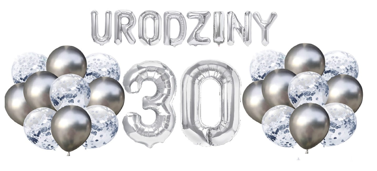 Zestaw balonów na 30 Urodziny srebrne balony Napis