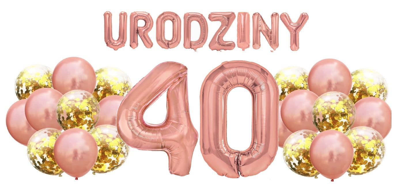 Zestaw balonów na 40 Urodziny Rose Gold Napis Cyfry 100cm