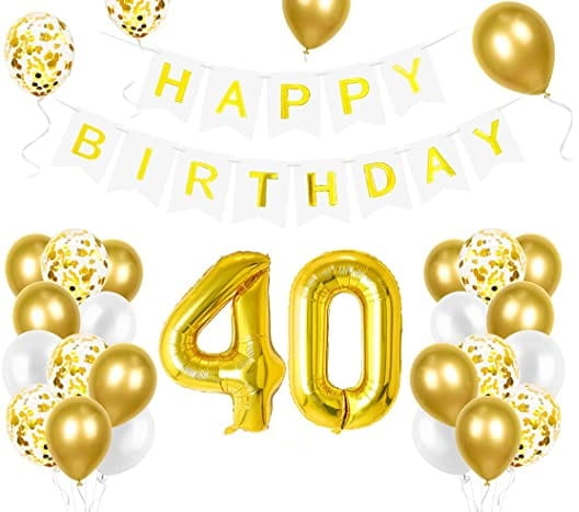 Zestaw balonów na 40 Urodziny cyfry złote baner Happy Birthday