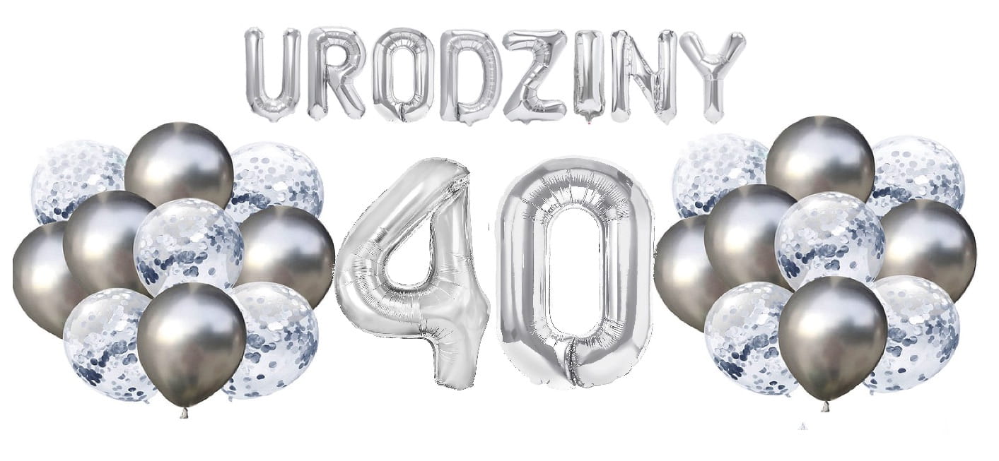 Zestaw balonów na 40 Urodziny srebrne balony Napis