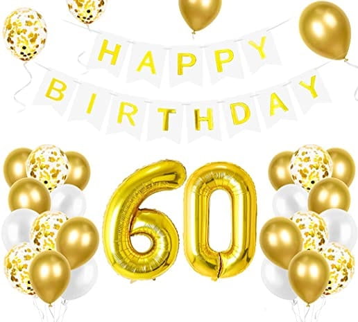 Zestaw balonów na 60 Urodziny cyfry złote baner Happy Birthday