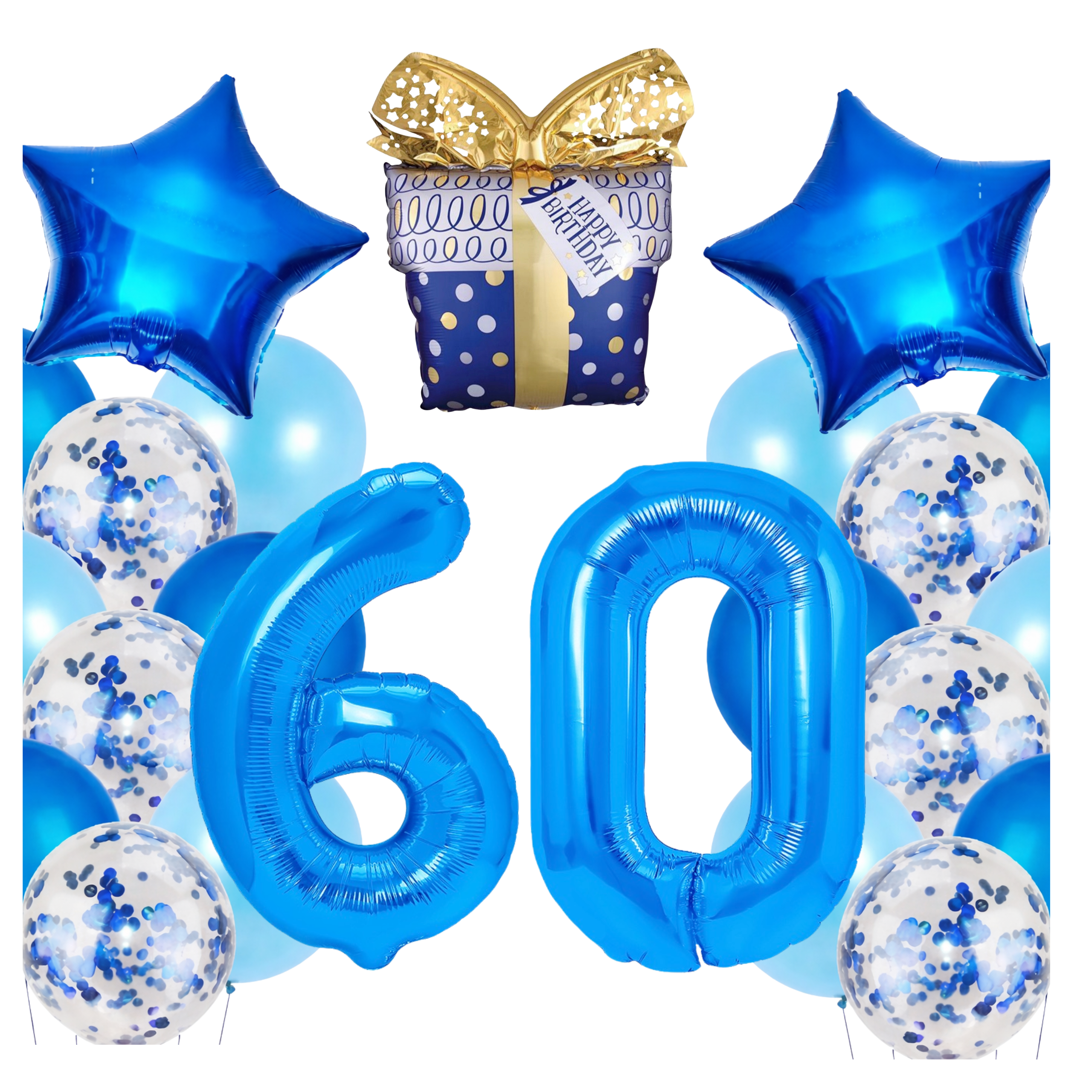 Zestaw balonów na 60 Urodziny niebieskie Granatowe balony PREZENT CYFRY