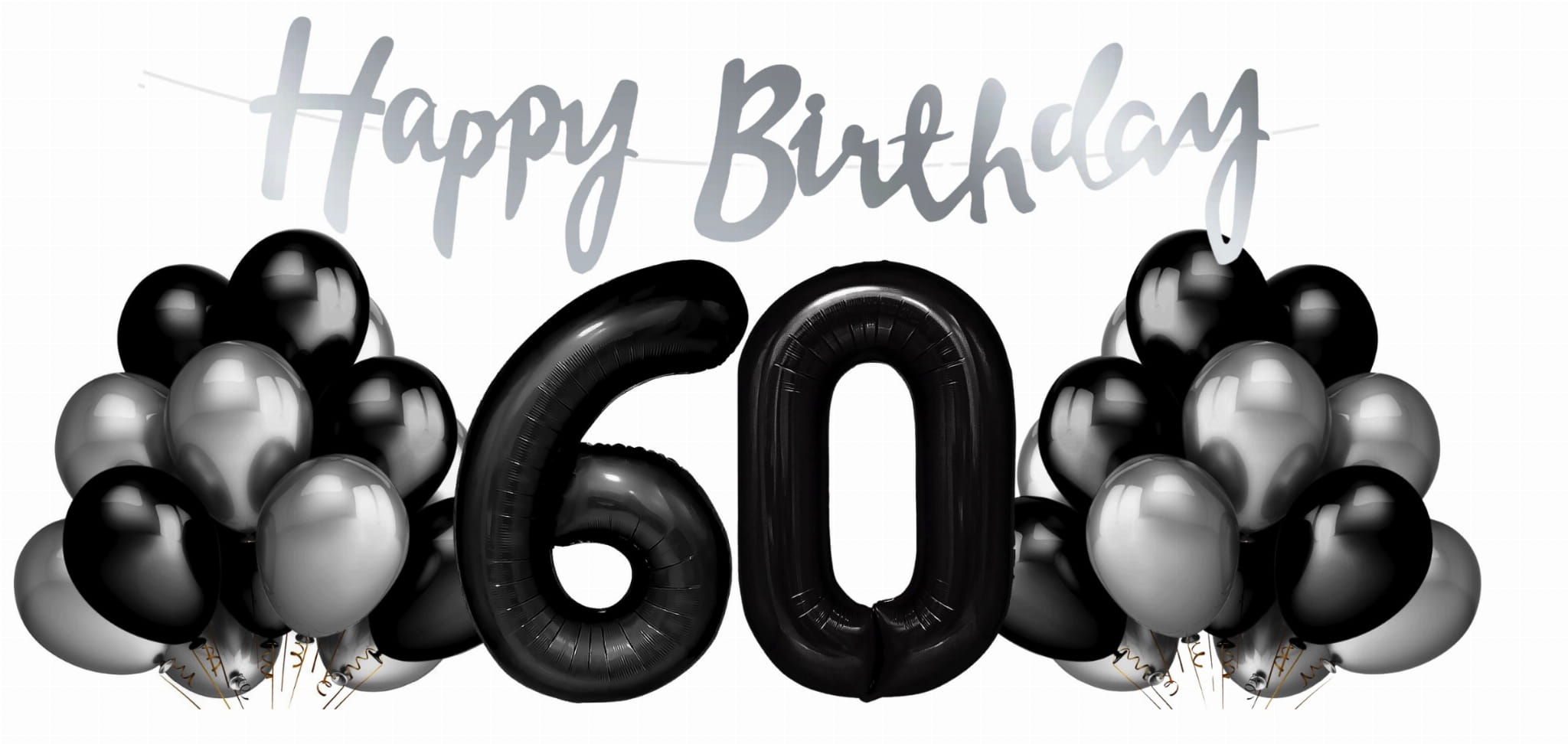 Zestaw balonów na 60 urodziny Cyfry czarne balony srebrno czarne Baner Hel