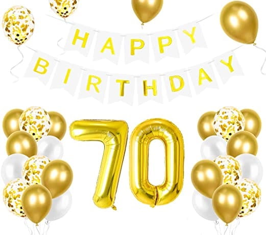 Zestaw balonów na 70 Urodziny cyfry złote baner Happy Birthday
