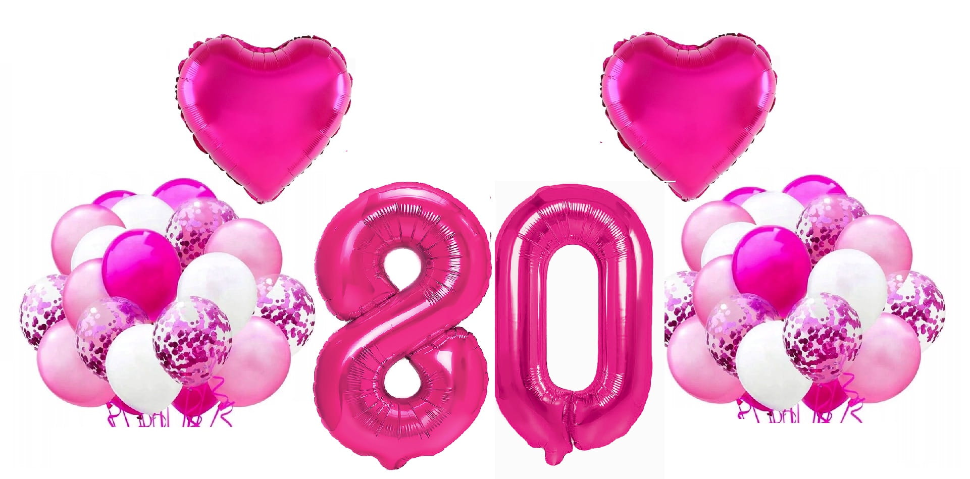 Zestaw balonów na 80 Urodziny Cyfry 100cm fuksja Serce balony