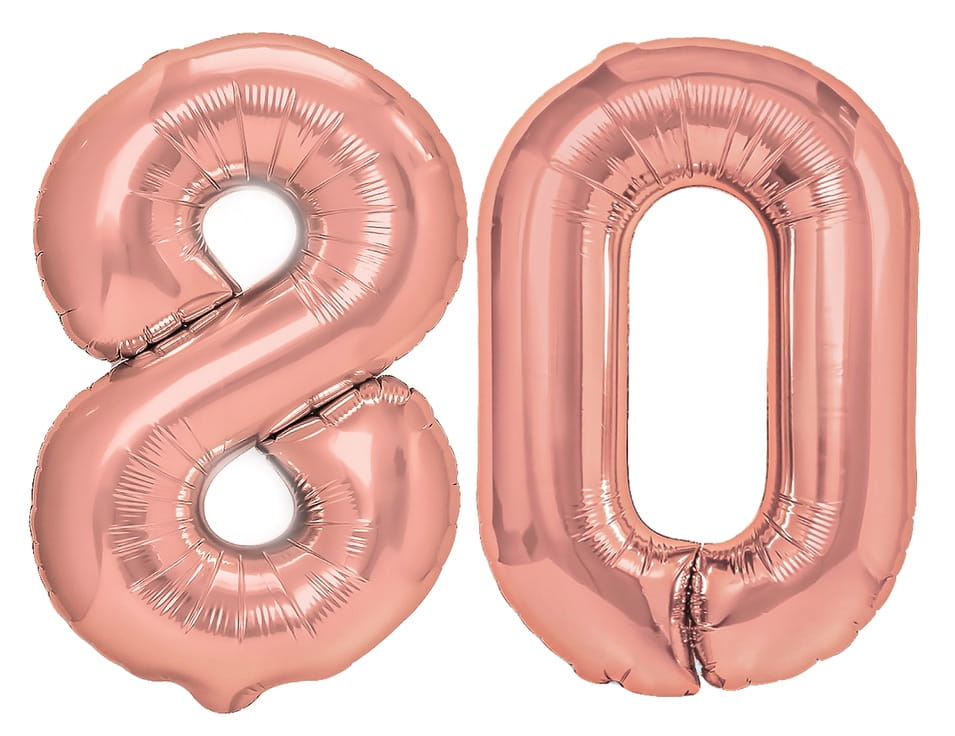 Zestaw balonów na 80 Urodziny Cyfry Rose gold baner Happy Birthday