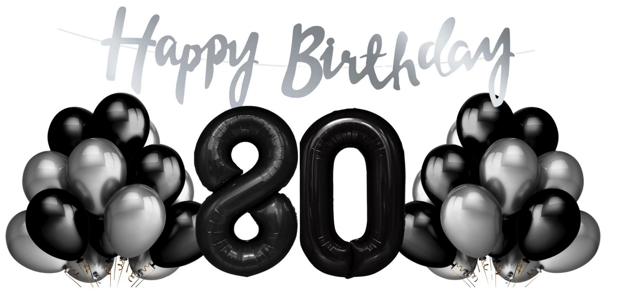 Zestaw balonów na 80 urodziny Cyfry czarne balony srebrno czarne Baner Hel