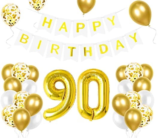 Zestaw balonów na 90 Urodziny cyfry złote baner Happy Birthday