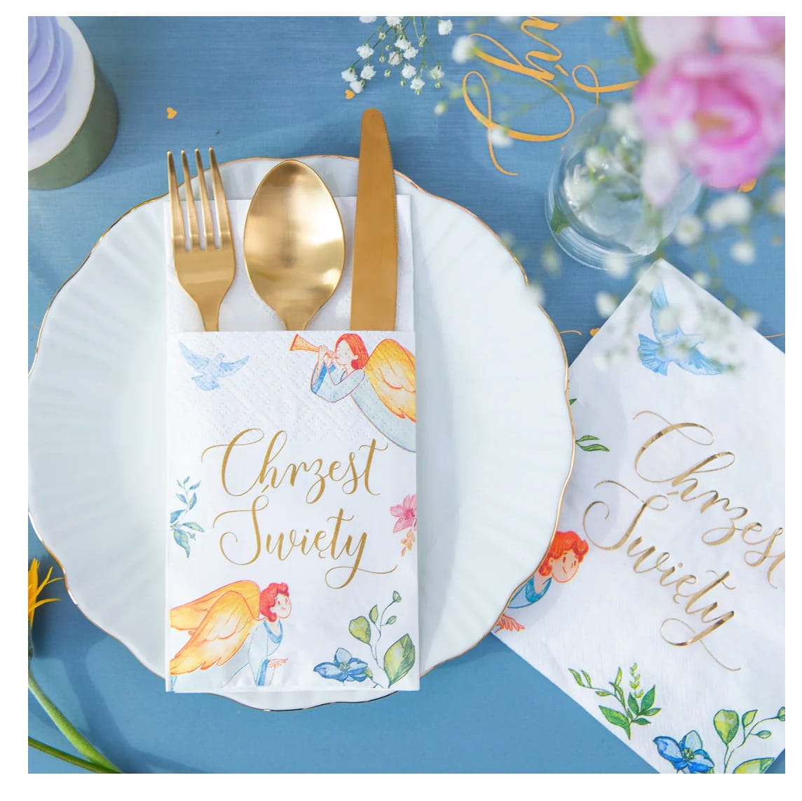 ✅ Oferujemy kompletny zestaw w kolorach złotym, różowym i białym, który zapewni elegancję i blask każdemu zakątkowi podczas tego wyjątkowego dnia.
