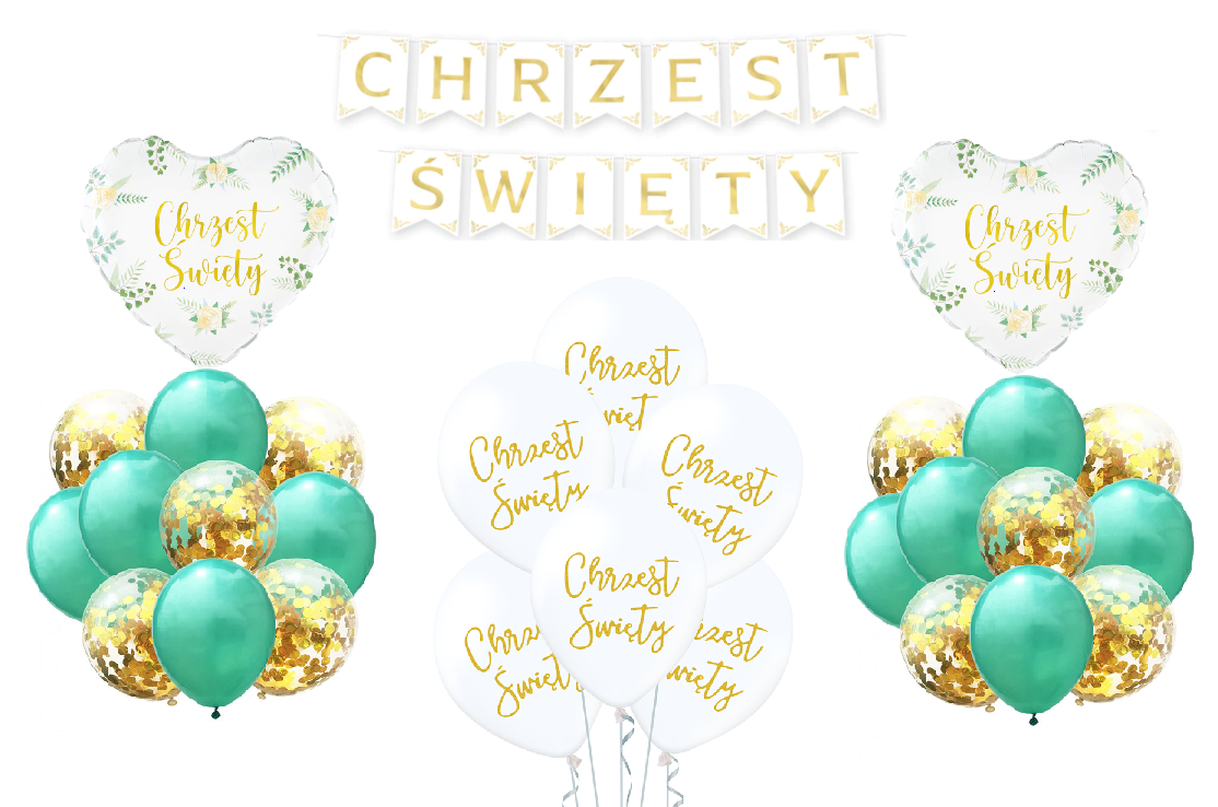 Zestaw balonów na Chrzest Święty biało zielone gałązki