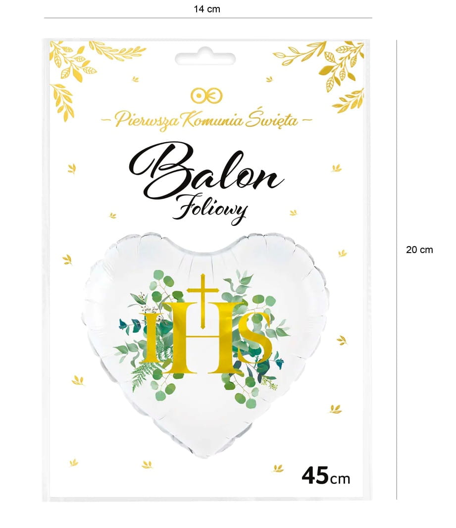 ✔️ Symboliczny balon serce IHS, który podkreśla charakter uroczystości