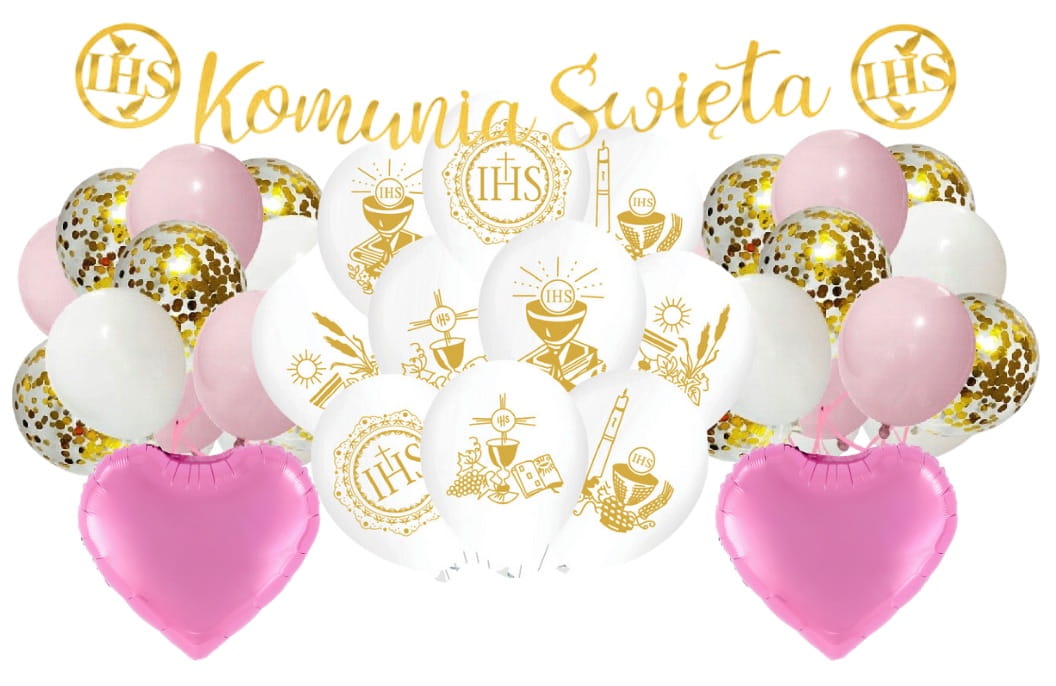 Zestaw balonów na Komunię Świętą IHS róż dziewczynka