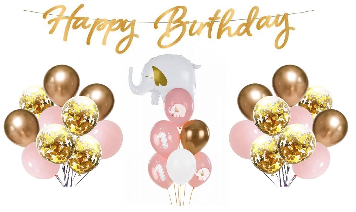 Zestaw balonów na Roczek Słonik Pierwsze Urodziny
