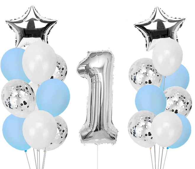 Zestaw balonów na Roczek dla chłopca błękit 0-9