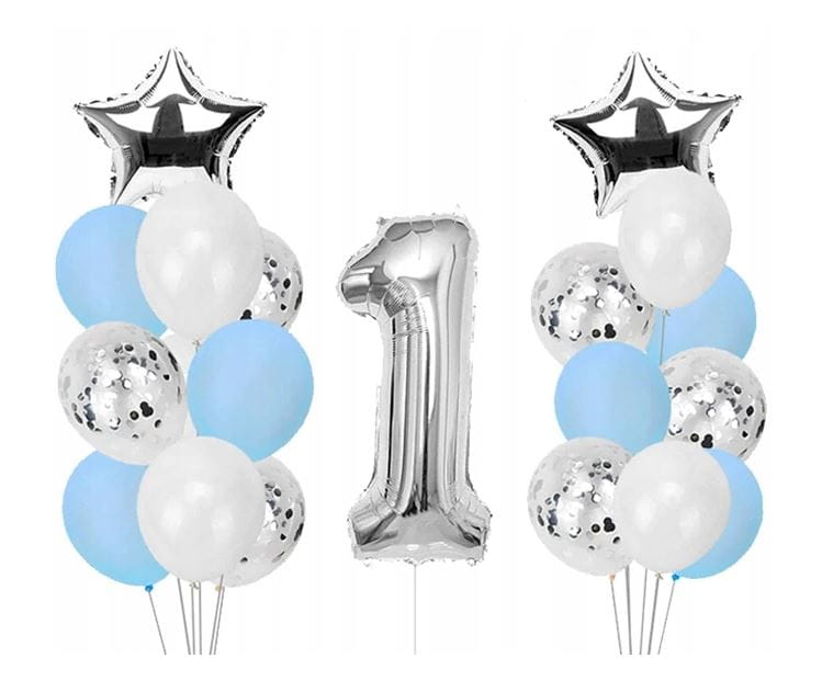 Zestaw balonów na Roczek dla chłopca błękit z cyfrą 1