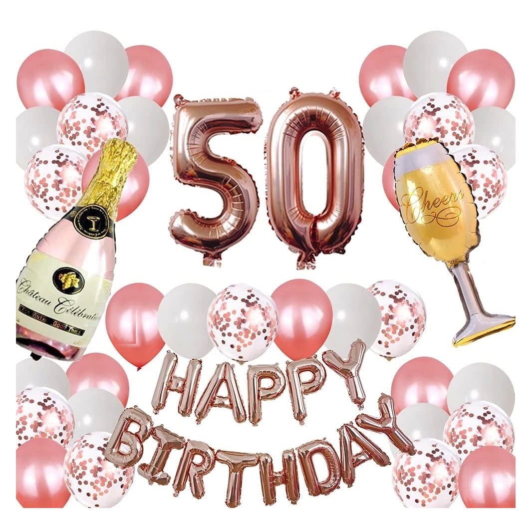 - napis z balonów foliowych Rose Gold Happy Birthday ( balony nie unoszą się po napompowaniu helem, Rozmiar ok. 40cm